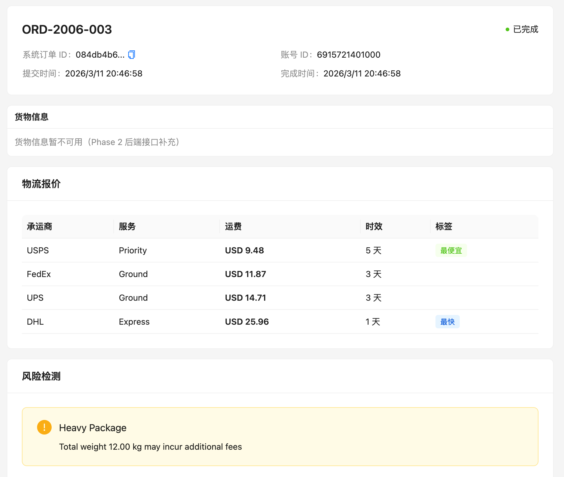 备注:当前物流商接口数据为 Mock 随机值,后续可接入真实物流商 API。