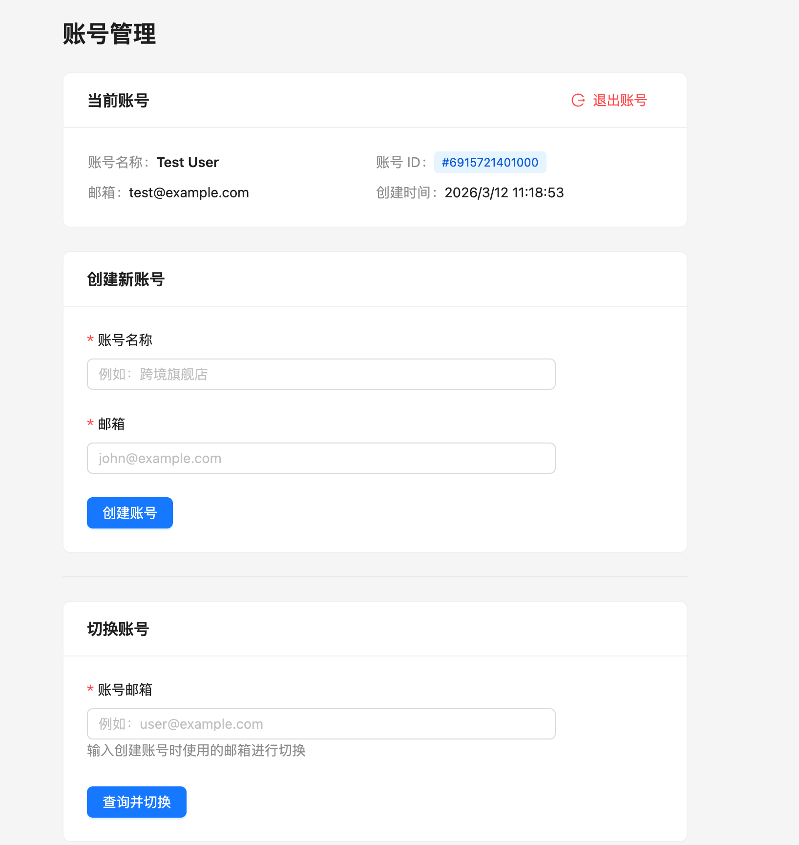 客户注册及账号切换